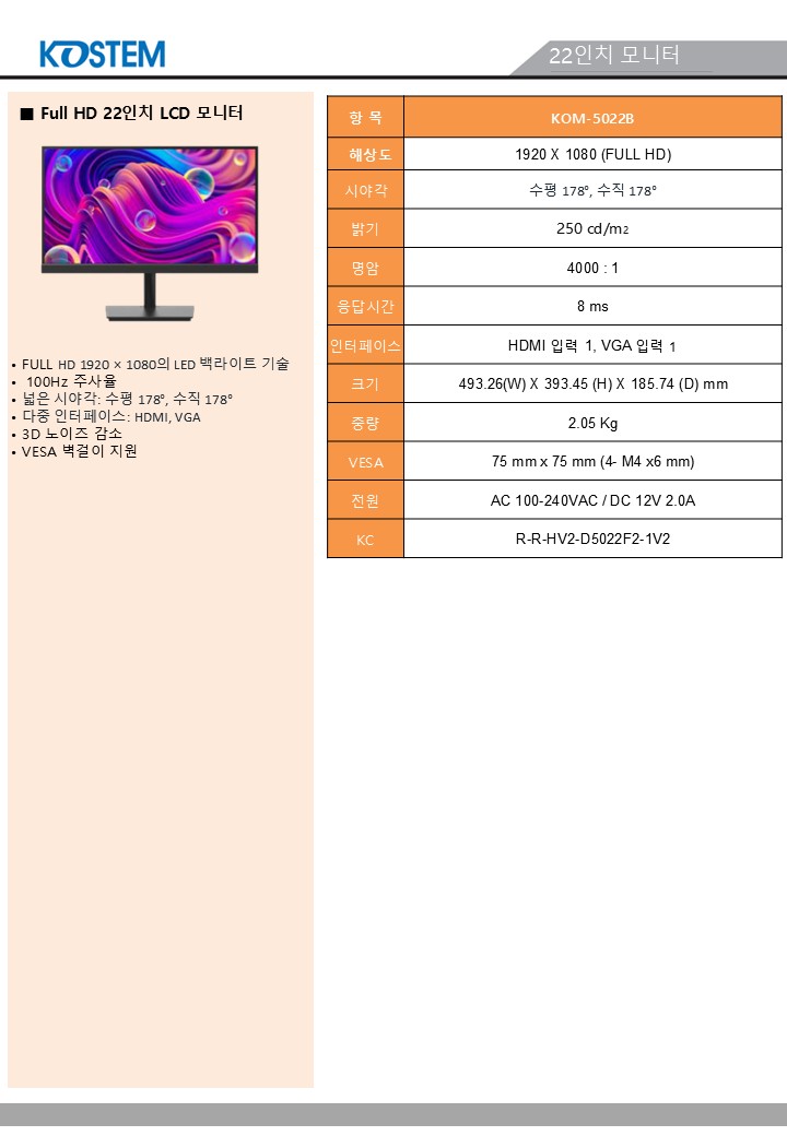 22인치 모니터 KOM-5022B